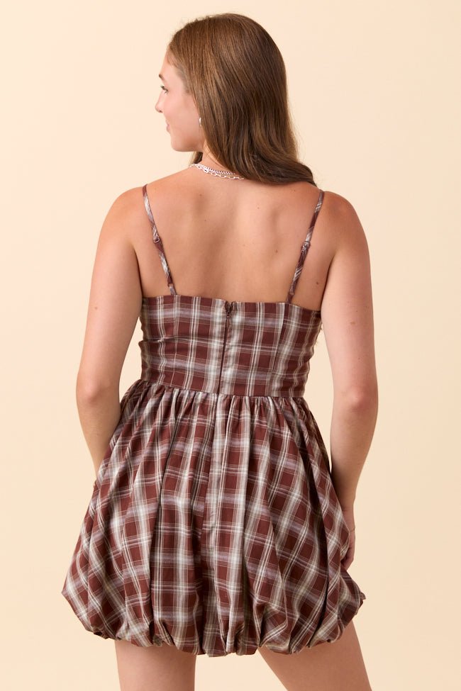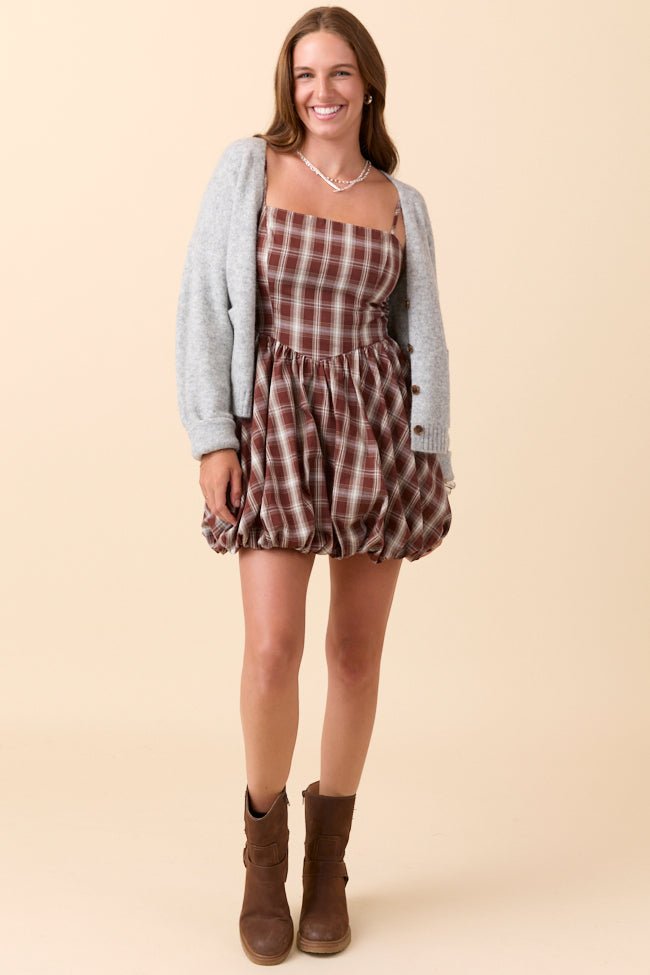 Blaire Brown Plaid Bubble Hem Mini Dress