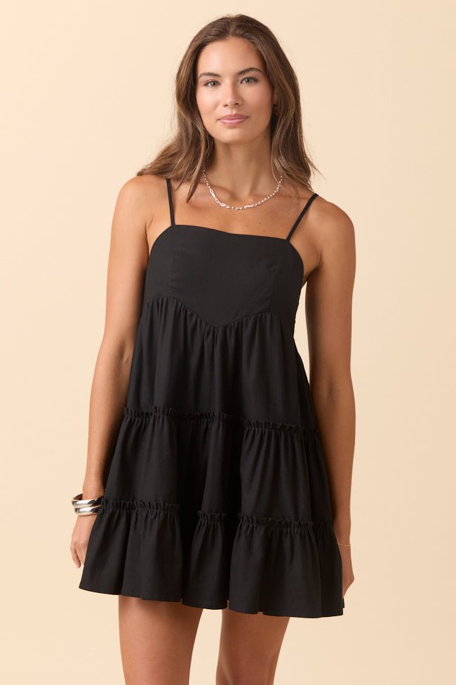 Change My Tune Black Square Neck Solid Romper Dress