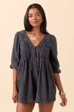 Tags: Bestsellers, BFEmployeeDiscount, Capsule: Rodeo Renaissance, CasualDress, Category:Rompers, Clothing, Clothing/Dresses, Clothing/Rompers & Jumpsuits, Collection: 2025 September NA, Color:Grey, DenimShop, DiscountCode, dresses, Dresses Rompers & Jumpsuits, Dresses/Solid Dresses, Dvn:B, FallStyles, Grey, Material:Denim, Neckline:V-Neck, New, Print:Solid, PromoCode, Rompers, Rompers & Jumpsuits, Season:Fall, SeptemberNA25, SitewideSale, size_chart_clothing_new, Sleeve:Long Sleeve, SolidDress, Style:Romper, YCRF_generic, YGroup_eleanor_romper