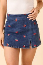 Be the first to review “My Favorite Dark Wash Cherry Embroidered Side Slit Denim Skort” Cancel reply