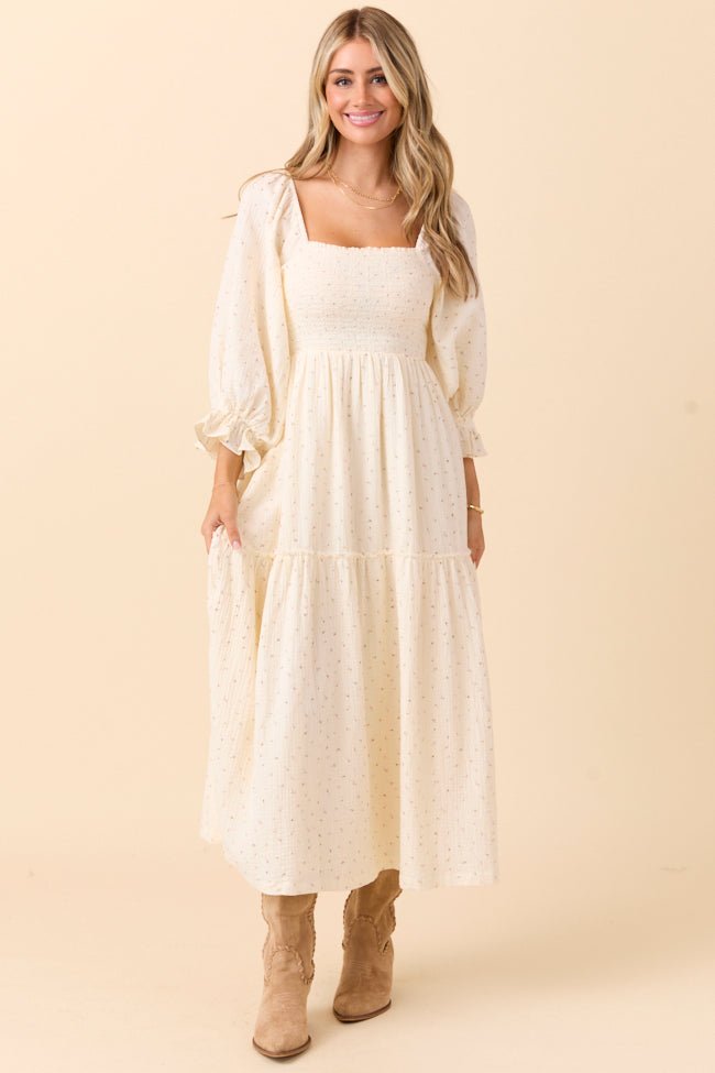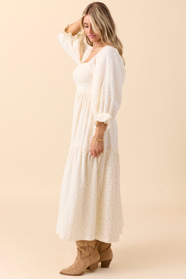 Thalia Ivory Floral Smocked Top Maxi Dress