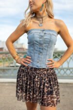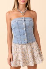 Tags: Bestsellers, BFEmployeeDiscount, Blue, Capsule: Cassidy, CasualTop, Category:Tops, Clothing, Clothing/Tops, Collection: 2025 September Cassidy Montalvo, Color:Blue, ConcertOutfit, DenimShop, DiscountCode, Dvn:B, Material:Denim, New, New14, PermanentSitewideExcluded, PromoCode, Season:Fall, SeptemberCassidy, size_chart_clothing_new, Sleeve:Strapless, Tops, Wash:Medium Wash, YCRF_generic