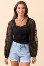 The Lucy Black Floral Mesh Ruched Top Just Classically Cassidy X Pink Lily